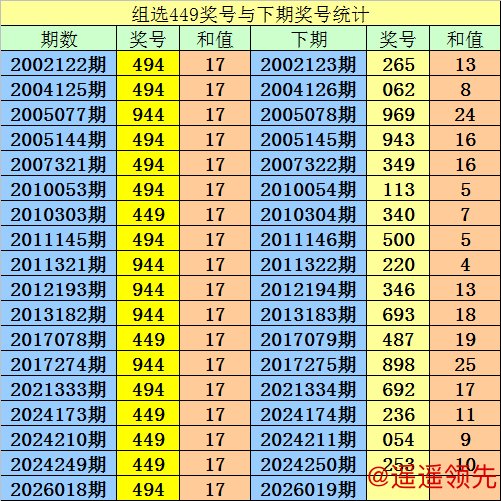 第2026018期3D奖号组选为:449,历史上该号码组选出现18次,下期号码分别为:265、062、969、943、349、113、340、500、220、346、693、487、898、692、236、054、253。